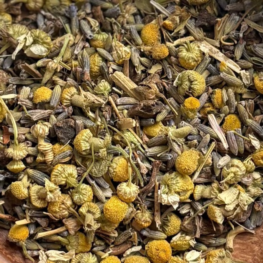 Chamomile, passionflower, lavender, valerian root, lemon balm
